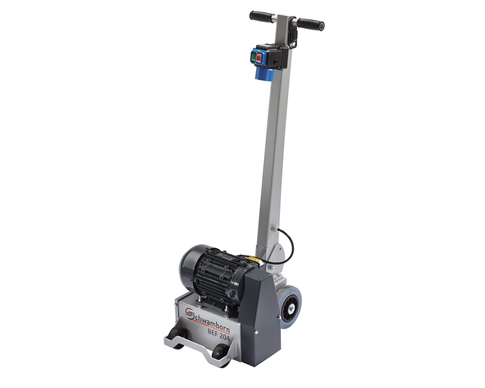 Die Schwamborn BEF204 ist eine leichte Beton- und Estrichfräse mit integrierter Randfräse für das Abtragen von Bodenunebenheiten, Überständen, Abfräsen von Beschichtungen bis zum Rand mit nur 10mm Randabstand auf Estrichböden mit einem staubdichten und damit wartungsfreien Rotorlager.