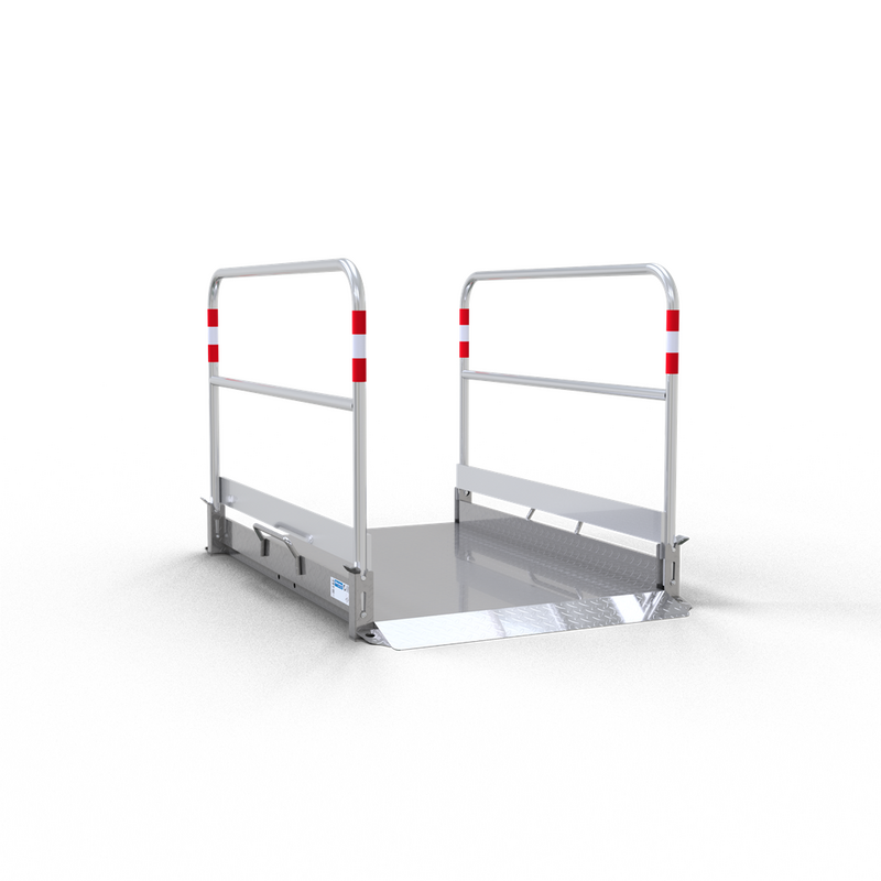 Die Grabenbrücke ist Ihre zuverlässige Lösung, um Gräben, Gruben oder Löcher auf einer Baustelle konform und sicher abzusichern. Mit einer Länge von 1,5 m und einer Breite von 1 m bietet sie ausreichend Platz, um den Zugang zu überqueren und gleichzeitig eine stabile Plattform zu gewährleisten.